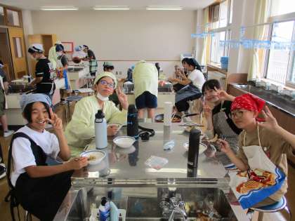家庭科の学習で調理実習を行いました。班のみんなで協力して、おいしい野菜炒めを作りました。
