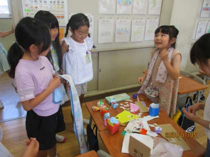 折り紙係がケーキを作ってケーキ屋さんを開きました。本物のような、おいしそうなケーキにスプーンもついていて、本当にカフェに行った気分で楽しんでいました。