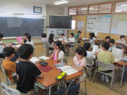 国語の学習では、「まいごのかぎ」という物語を読み進めていました。登場人物の気持ちの変化を捉えながら、一番好きな場面を友達に伝え合いました。主人公の気持ちが明るく変化した最後の場面を選ぶ子供がたくさんいました。しっかり文章を読むことができています。