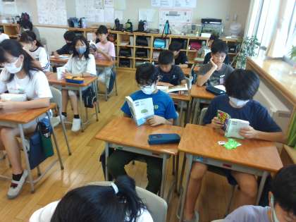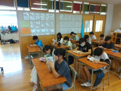 掃除の後に、10分間読書をしています。みんな集中して読書をしています。これからも本に親しんでほしいと思います。