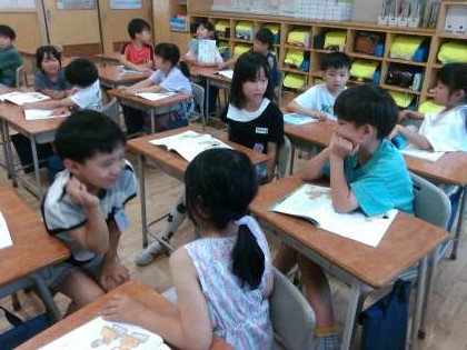 国語科の学習で、「すきなこと、なあに」の学習をしました。2人ペアで、自分の好きなことを話したり、相手の好きなことを聞いたりしました。2人ペアの次には、4人グループになって、好きなこととそのわけを伝え合いました。