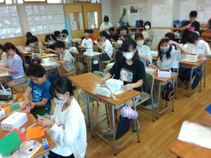 「くるくるクランク」の学習に取り組んでいます。みんな自分の考えた作品を作ろうと楽しみながら制作しています。