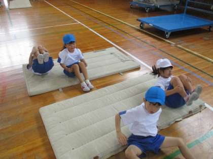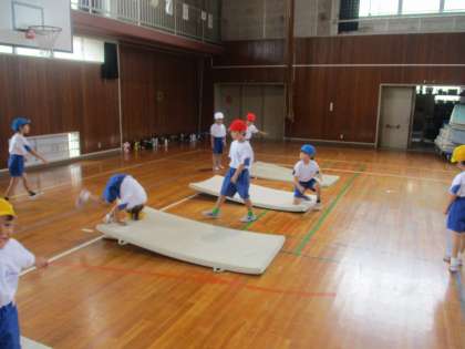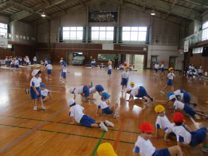 今日は、体育科でマット運動を行いました。子供たちは「動物歩き」「ゆりかご」「前転」等を選択し、自分たちが上手くなりたい動きを中心に練習して楽しんでいました。