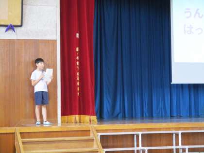 今回、素敵だったのは、集会の「始めのあいさつ」を担当した5年生が、緊張しながらも、堂々と話した後、司会を務めていた6年生が、降壇する5年生にグッドのサインを送っていたことです。後輩の気持ちを汲み、先輩としてどのように関わればよいかを考え、行動に移すことができる藤っ子がとても素敵でした。