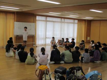 運営委員会は、毎朝、玄関で挨拶運動をしています。子供たちが登校し始めると、玄関から大きな声で「おはようございます」と聞こえてきます。どの子に対しても笑顔で挨拶をする姿は、見ていてとても清々しくなります。それでも、運営委員会の子供たちは、多くの子が、登校し終えるとその日の反省点や改善点を共有していました。自分たちで課題をもち、解決を図ろうと日々努力する姿はとても頼もしいです。