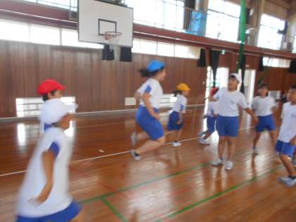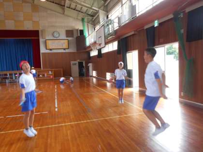 今日は、クラス合同でなわとびやドッジボール等の体づくり運動に取り組みました。なわとびでは、お互いに教え合う場面があったり、ドッジボールでは、あまり投げれていない友達にボールをゆずったりと、素敵な姿がたくさん見られました。「楽しかった」「いい汗かいたしいい運動になった」と体を思いっきり動かして満足した様子の子供たちでした。