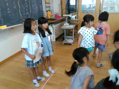 1学期の終わりに学級で集会をしました。みんなでゲームをしたり、読み聞かせをしたりして、楽しいひとときを過ごしました。2学期は1学期よりもたくさん集会ができるといいですね。