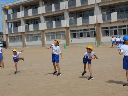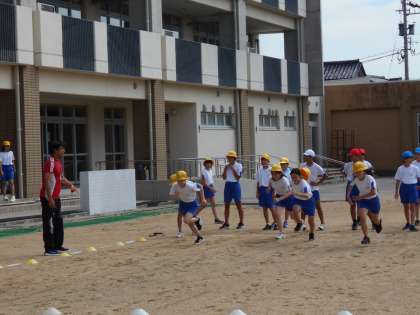 こまめに水分補給と休憩を取り、元気いっぱい運動に取り組みました。