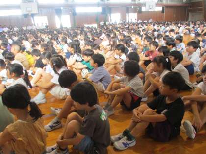 夏休みが終わり、2学期が始まりました。子どもたちは、校長先生のお話を真剣に聞き、2学期から頑張りたいことや大切にしていきたいこと等を考えていました。本日は1年生の欠席も大変少なく、元気に登校していました。担任一同とても嬉しく思っています。