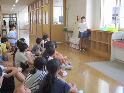 夏休みに取り組んだ自由研究の発表会をしました。都道府県名を覚えるために、すべての都道府県の形を様々な動物の形に当てはめて日本地図にまとめた作品や、美しい氷をつくるために実験を繰り返し、データをまとめた作品等、力作ぞろいの自由研究でした。