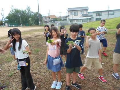 図画工作科の学習で、お気に入りの形・色・大きさの葉っぱを探しました。この後は葉っぱを使って色々な作品作りに取りかかっていきます。どんな作品が出来上がるのか楽しみです。