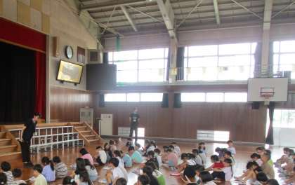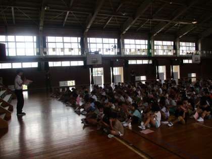 今日はは学年で集まって、「遠足」と「学習発表会」についての話を聞きました。遠足については、しおりを見ながら約束について確認したり、友達と話し合ったりしました。また、学習発表会について、大まかな流れを聞き、チャレンジしてみたい役割やがんばりたいことを考えました。