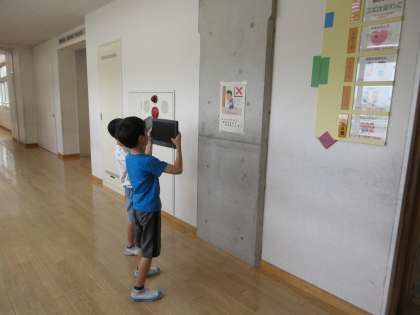 国語科「みの回りのものを読もう」では、学校にある掲示物を見付け、分かりやすく示すためにどのような工夫がされているか考えました。
