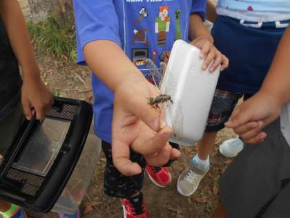 生活科「いきものとなかよし」では、身の回りに住んでいる生き物についての学習をしています。今日は、グラウンドに住む生き物を探しに行きました。素速く飛ぶトンボをつかまえようと人差し指を立ててじっと待っていたり、草の隅々までかき分けたり等、子供たちは生き物を捕まえるのに必死な様子でした。
