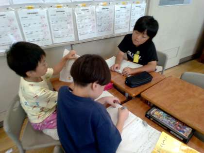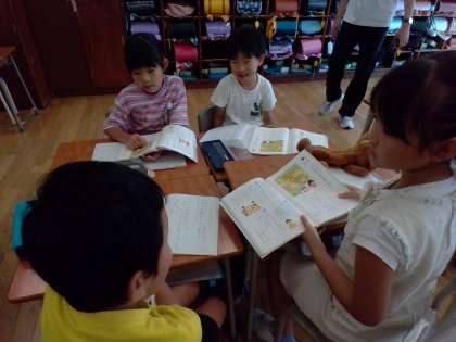 国語科「ことばでみちあんない」の学習では、案内役の友達の話を聞きながら、指定した待ち合わせ場所に向かうことができるのかチャレンジしました。子供たちは、大事な言葉を聞き逃さないように真剣に友達の話を聞いていました。