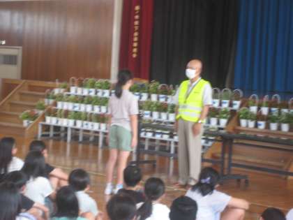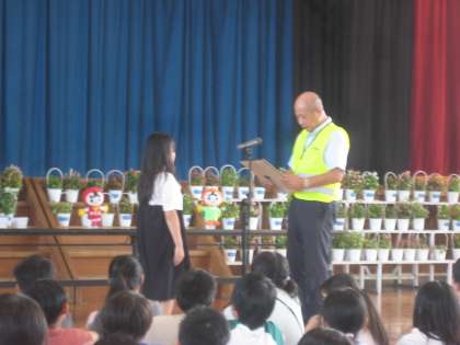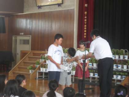 各クラスの代表児童が、記念品を受け取り、代表の挨拶をしました。