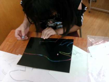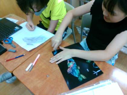 色の出方を想像しながら消して、今までに習った国語の物語や詩を再現しています。