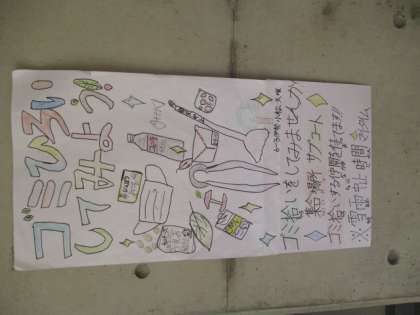 その6年生たちは、最近玄関に「マイタイムに一緒にごみを拾いませんか」と呼びかけるポスターを作成し、掲示していました。