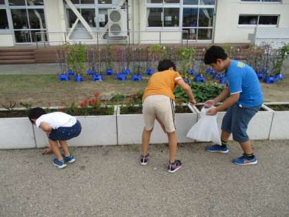 そのことを発言した2年生の子に伝えると、翌日の朝のサブコートには、2年生と6年生が一緒にごみ拾いをしている姿がありました。