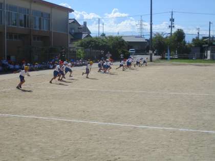 今日は、チャレンジキッズ技セブンの「7秒で30メートル走ることができた」という技に、学年全体で取り組みました。活動の後に、「7秒でクリアするにはどうしたらいいかな」「もっと速く走れるように練習したいな」などの発言がありました。