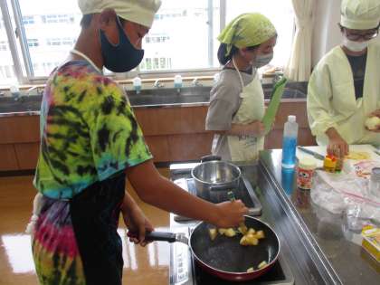 9月19日(木)に、調理実習を行いました。家族のための献立づくりで決めたじゃがいも料理を調理しました。