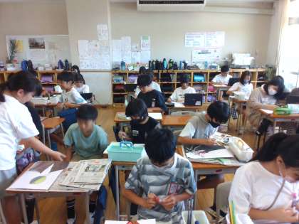 それぞれが描いた名画の色塗りをしています。実際の作品に近付くように気を付けて色をつくっています。