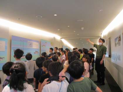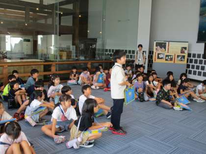 ますのすしミュージアムでは、ますのすしの作り方説明を聞いたり、実際に笹を並べておられる様子を見学したりしました。子供たちは、「すごい!」「はやい」と言いながら目を輝かせて見入っていました。