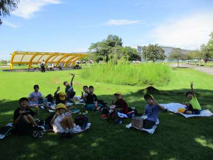 美味しくご飯を食べたり水で暑さを吹き飛ばしたり、元気な子供の姿がみられました。