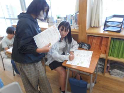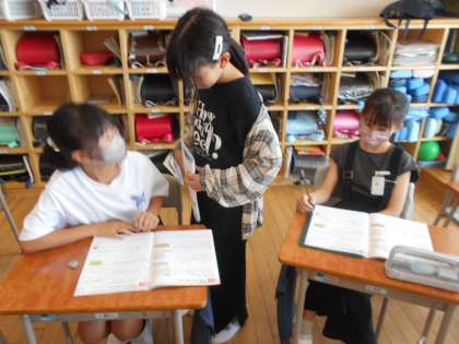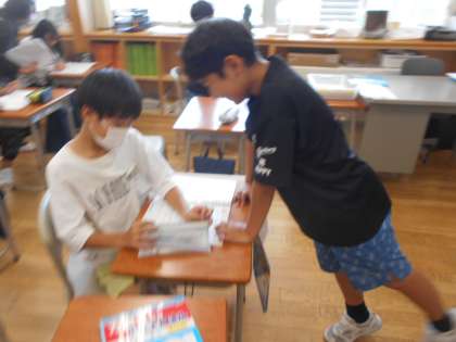 解き終わった人は「お助けマン」として、困っている友達のところにいき、解き方やコツを分かりやすく丁寧に教えてあげていました。「○○さんのおかげで分かった」「○○さんの教え方が分かりやすかった」と報告してくれた子供いました。お互いに助け合い、高め合いながら頑張る姿がとても素敵でした。