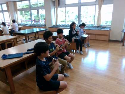 音楽科の学習では、学習発表会で演奏する曲の練習が始まっています。各パートや曲ごとに分かれて練習をしています。友達と声をかけあって練習する姿が素敵でした。今後も楽しみです。