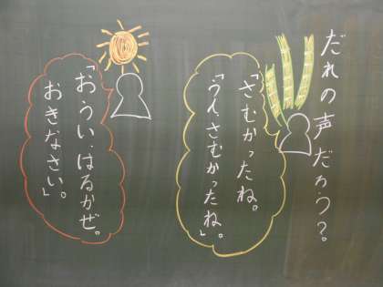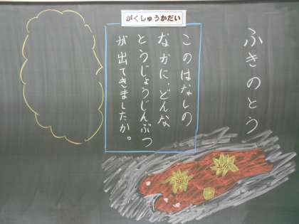家でのべんきょうでは、「ふきのとう」の音読をなんかいもがんばってきましたね?今日は、その「ふきのとう」からもんだいを出します。考えたり音読したりして、こくごの力をパワーアップさせましょう!