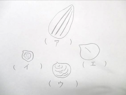 教科書の17ページを見ながら、アからエのたねの写真をスケッチしましょう。