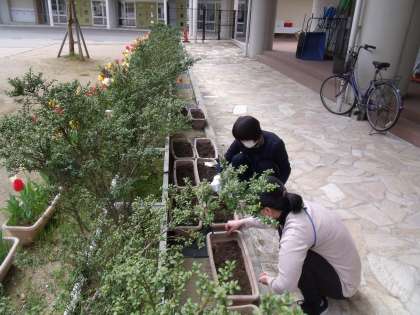 皆さんのかわりに、先生たちで4月中にヘチマの畑を耕しました。