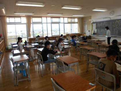 1時間目には、放送で校長先生のお話や、保健室の先生から感染症を予防するための注意点やルールについての説明があり、新型コロナウイルスの感染防止に向けての知識をしっかりと学びました。