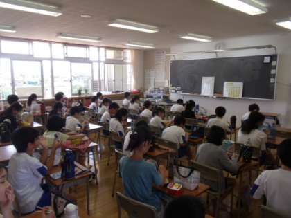 今日まで昼食はお弁当で、明日からは簡易給食となります。子供たちは一言もしゃべらず、行儀よくお弁当を食べていました。