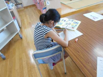 4年生の総合では、環境についての調べ学習を行っています。今日は、自分の調べたい環境についてのテーマを決めて、図書室で図書資料を探しました。まずは図書資料に書いてあることをメモして、そこから自分で考えたことをワークシートにまとめます。