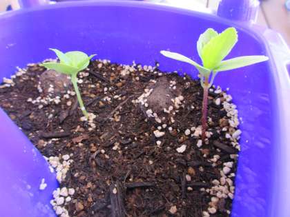 ホウセンカが発芽しました。大きな本葉まで出ているものもありました。