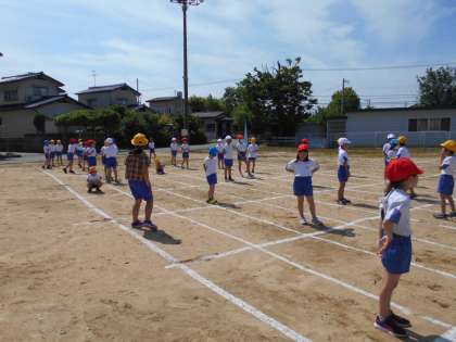 グラウンドで体育(3年生)