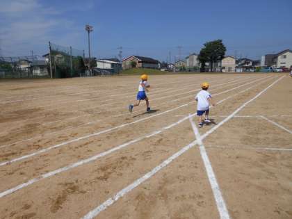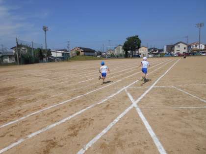 今日は、グラウンドで50m走をしました。これまでの体育やリフレッシュタイムの外遊び、縄跳びで、少しずつ体力を戻してきた子供たちです。元気にコースを駆け抜けました。