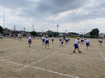 グラウンドで児童同士の距離をとって、体力を高める運動と50メートル走をしました。体をほぐしたり、瞬発力を高めるトレーニングを行ったりした後、最後に50メートル走を行いました。子供達は元気いっぱいに体を動かしていました。