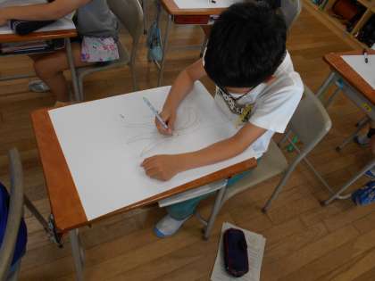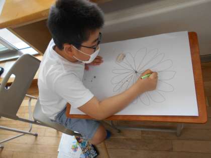 今日の図工は、前回の続きです。想像を膨らませて、幻の花の形や色を工夫して描きました。