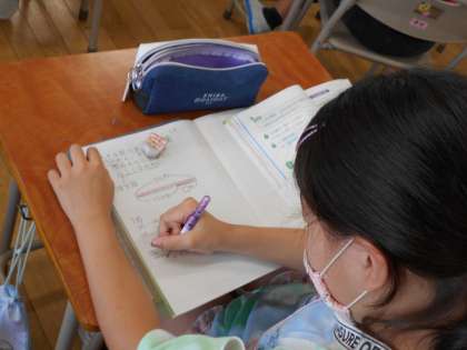 算数科では、言葉や式だけでなく、図も用いて考えを整理しています。