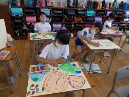 図画工作科「たまごの中から、こんな世界が生まれたよ」(2年生)
