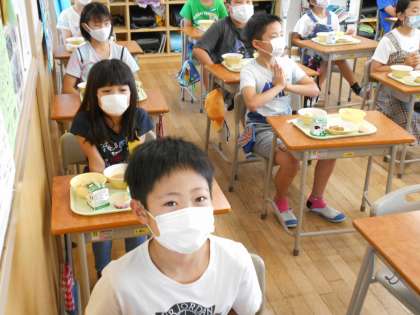 配膳しやすい給食が始まって、1週間が経ちました。今日も静かに、前を向いて、おいしい給食をいただきました。