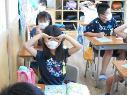 ALTの先生の発音をよく聞いて、遊びや天気の言い方の表現に慣れ親しみました。
