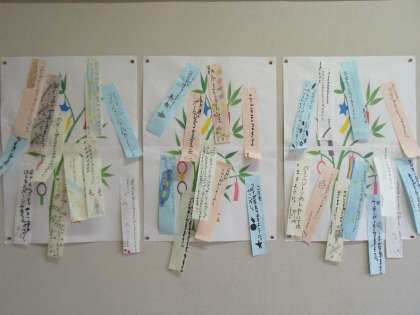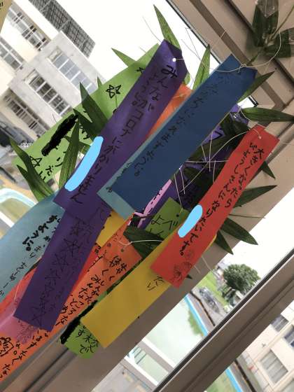 今日は七夕です。一人一人が今の思いや願いを短冊に込めて書きました。