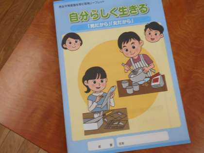 道徳の時間、男女平等の意識を育むリーフレットを教材に、話合いをしました。「男だから、女だから」という理由でやりたいことをできなかったり、人から嫌なことを言われたりした経験はないかを話し合いました。