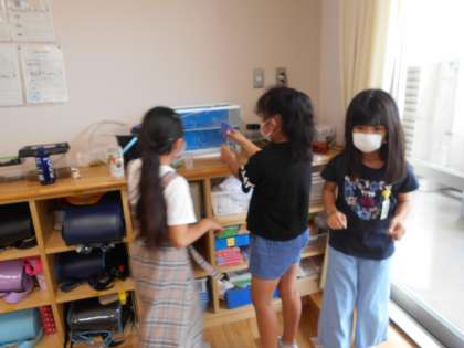 生き物係が中心となって、金魚の水槽をきれいに掃除しました。水もカルキ抜きを使ってきれいな水と入れ替えました。金魚たちも元気に水槽を泳いでいます。