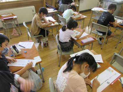 国語科で、俳句を学習しました。「夏」というテーマに合わせ、初めて俳句を作りました。友達の考えた俳句にも興味をもっていました。教室前廊下に掲示してありますので、懇談会の際にぜひご覧下さい。