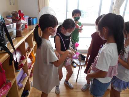 今日のリフレッシュタイム(休み時間)の様子です。剣玉をしたり、理科の実験で使ったマイカーで遊んだり、思い思いの過ごし方をしています。